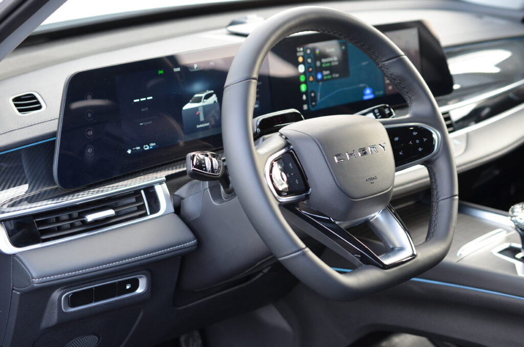 Wnętrze zdradza natomiast bardzo bliskie pokrewieństwo z Omodą 5. Fotele, przyciski, kierownica czy sam system inforozrywki są niemal identyczne. Na duży plus zasługuje jednak fizyczny panel sterowania klimatyzacją umieszczony pod ekranem – dzięki temu nie trzeba za każdym razem „przeklikiwać się” przez menu. Bardzo dobrze prezentuje się również gałka wybieraka automatycznej skrzyni biegów, stylizowana na kryształ.