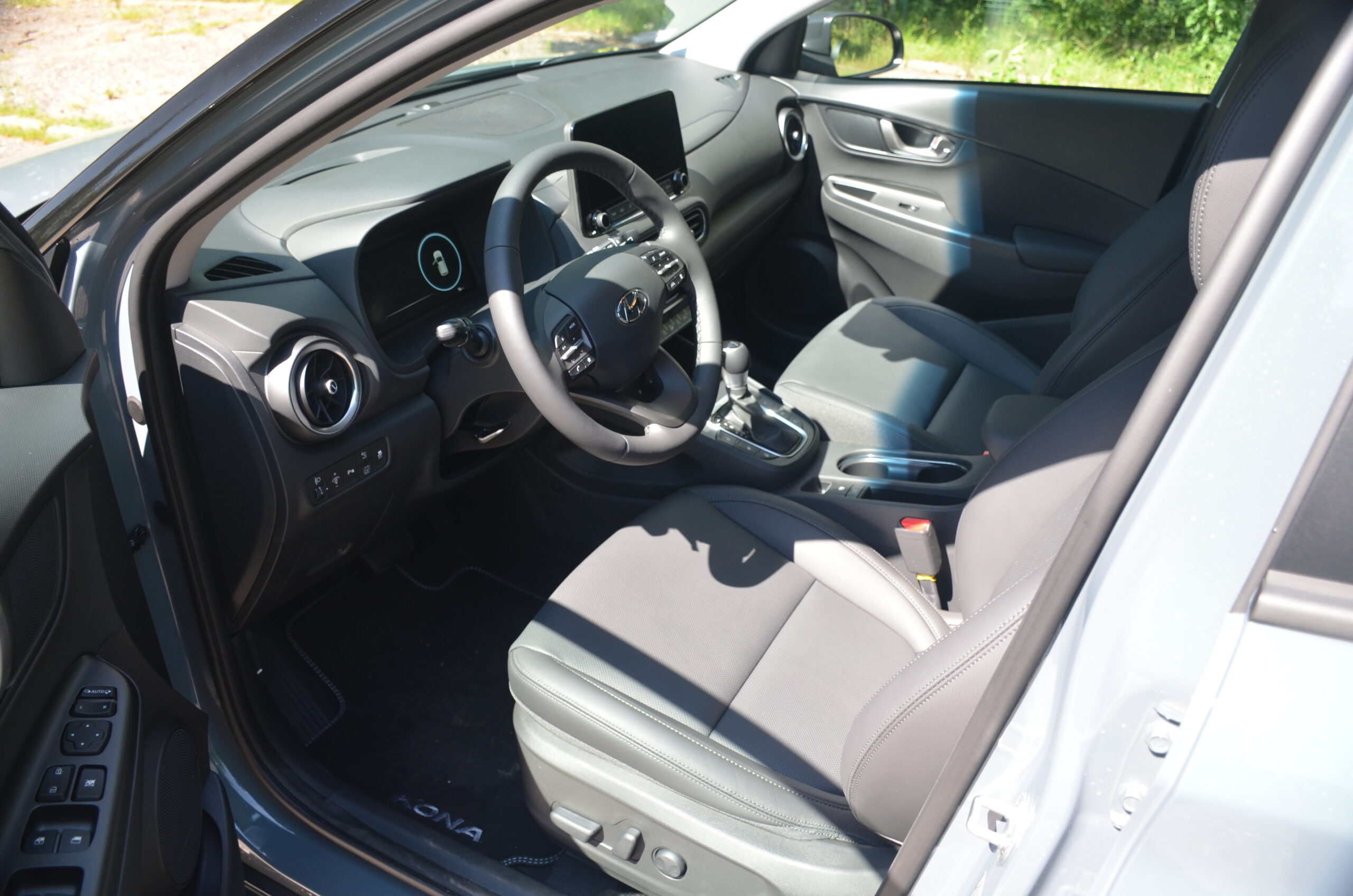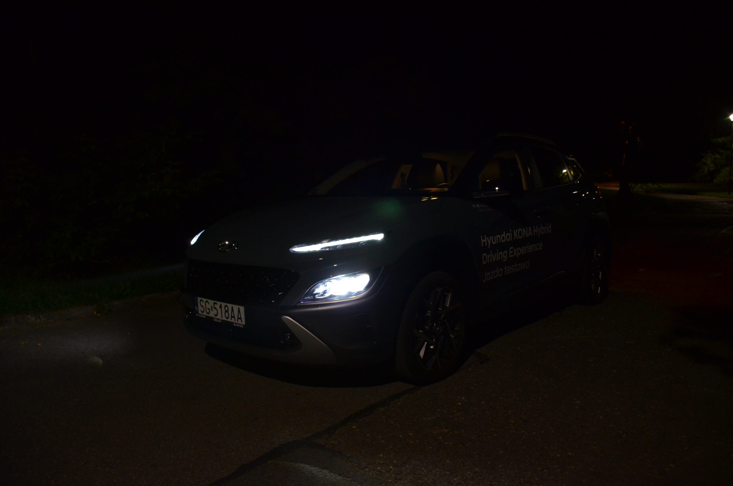Na pokładzie Nowej Kony pojawiły się cyfrowe zegary z 10,25-calowym kolorowym wyświetlaczem, które są bardzo czytelne, schludne i przekazują dużo informacji. Dostępny jest także 10,25-calowy ekran systemu infotainment, opisywany w teście Hyundai Tuscon Hybrid. Kolejną kwestią są wszelkiego rodzaju asystenci wspomagania jazdy i bezpieczeństwa, między innymi: asystent zapobiegania kolizjom czołowym, asystent utrzymywania pasa ruchu, asystent podążania na pasie ruchu, inteligentny tempomat z zatrzymywaniem i ruszaniem, system zapobiegający kolizjom podczas cofania i wiele innych. Co najważniejsze, systemy te działają i to całkiem dobrze. Asystent podążania na pasie ruchu utrzymuje samochód dokładnie pomiędzy pasami i robi to o wiele lepiej niż wiele innych marek. W testowanym egzemplarzu znajdowały się również czujniki parkowania z przodu i z tyłu, a także system monitorowania martwego pola i asystent świateł drogowych. Na plus zasługują również ledowe reflektory, które zapewniają świetną widoczność po zmroku. Ogólnie rzecz biorąc, systemy wspomagania i technologia jest mocną stroną nowego Hyundaia Kony.