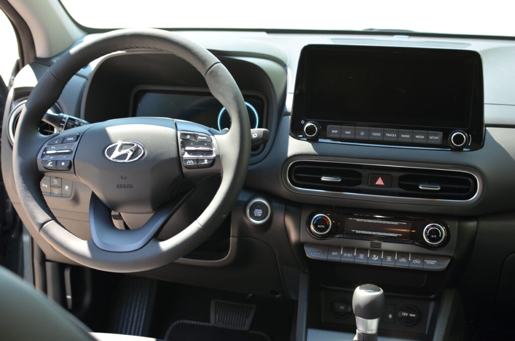 Posiadał też automatyczną klimatyzację (na niej skupię się nieco później). Kona nie jest wielkim samochodem, mimo to w środku nie można było narzekać na brak miejsca. Bagażnik jest wystarczający jak na samochód, który nie oszukujmy się, stworzony jest do miasta. Myślę, że spokojnie można by się nim wybrać na wakacje w 3 osoby.