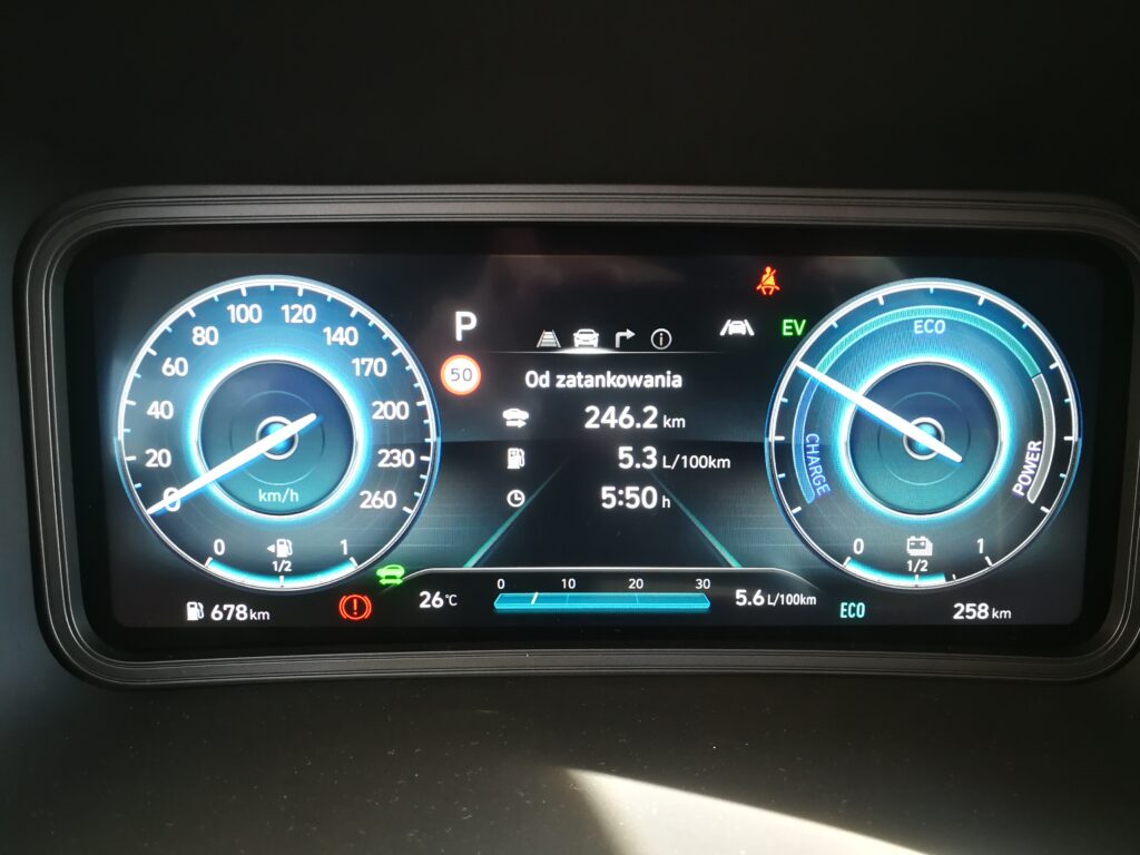 Kolejną zaletą Kony Hybrid z pewnością jest oszczędność. Z reguły hybrydy przestają być oszczędne, gdy zaczynamy jeździć agresywnie i poruszamy się autostradami. Kona jednak spisała się w tej kwestii doskonale. Podczas testu większość kilometrów przejechałem autostradą oraz drogami poza terenem zabudowanym, nie jeżdżąc przy tym „o kropelce”. Średnie spalanie Kony z całego testu wyniosło 5,3l/100km. Nie należy zapominać, że naturalnym środowiskiem tego samochodu jest miasto i tereny okołomiejskie. Przy czym warto zaznaczyć, że moc, którą oferuje zespół napędowy (141 KM) jest wystarczająca do codziennej, dynamicznej jazdy.