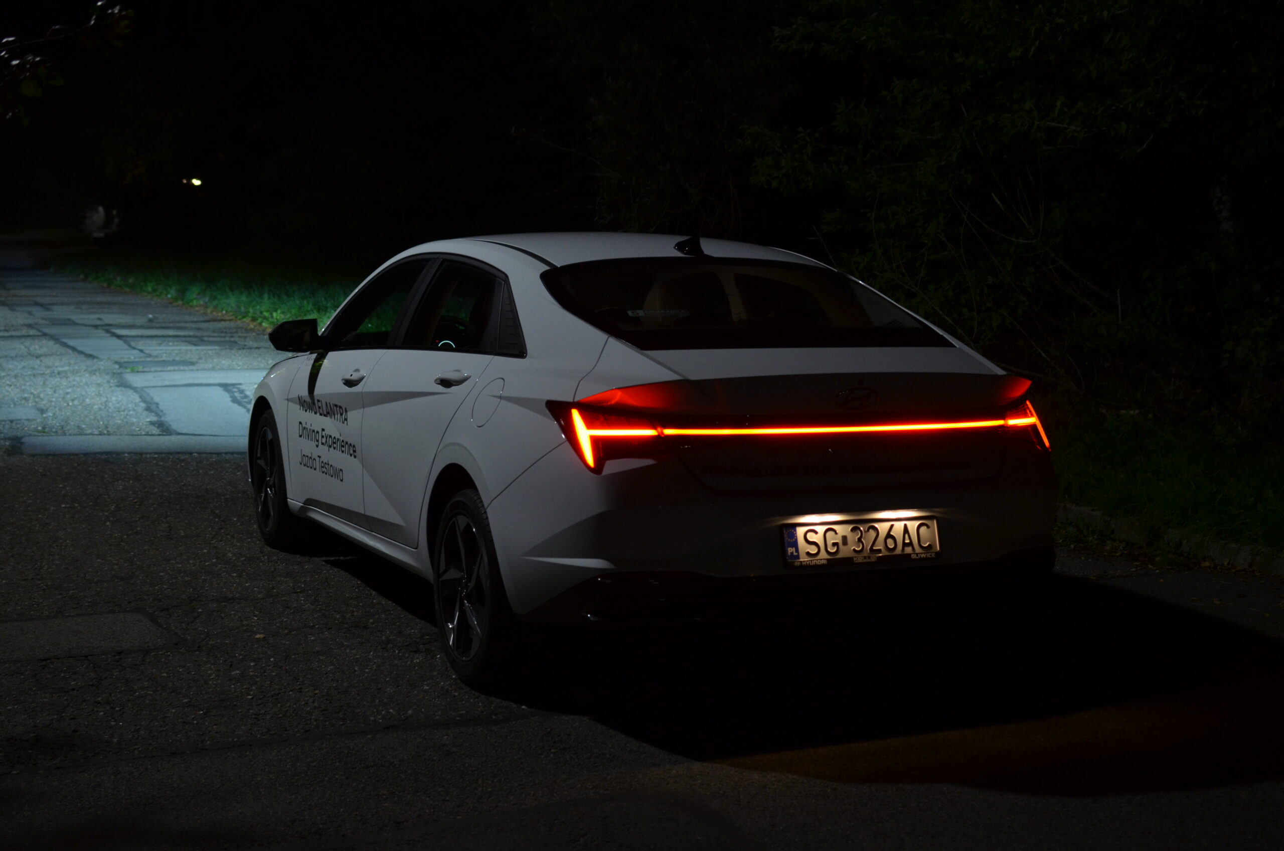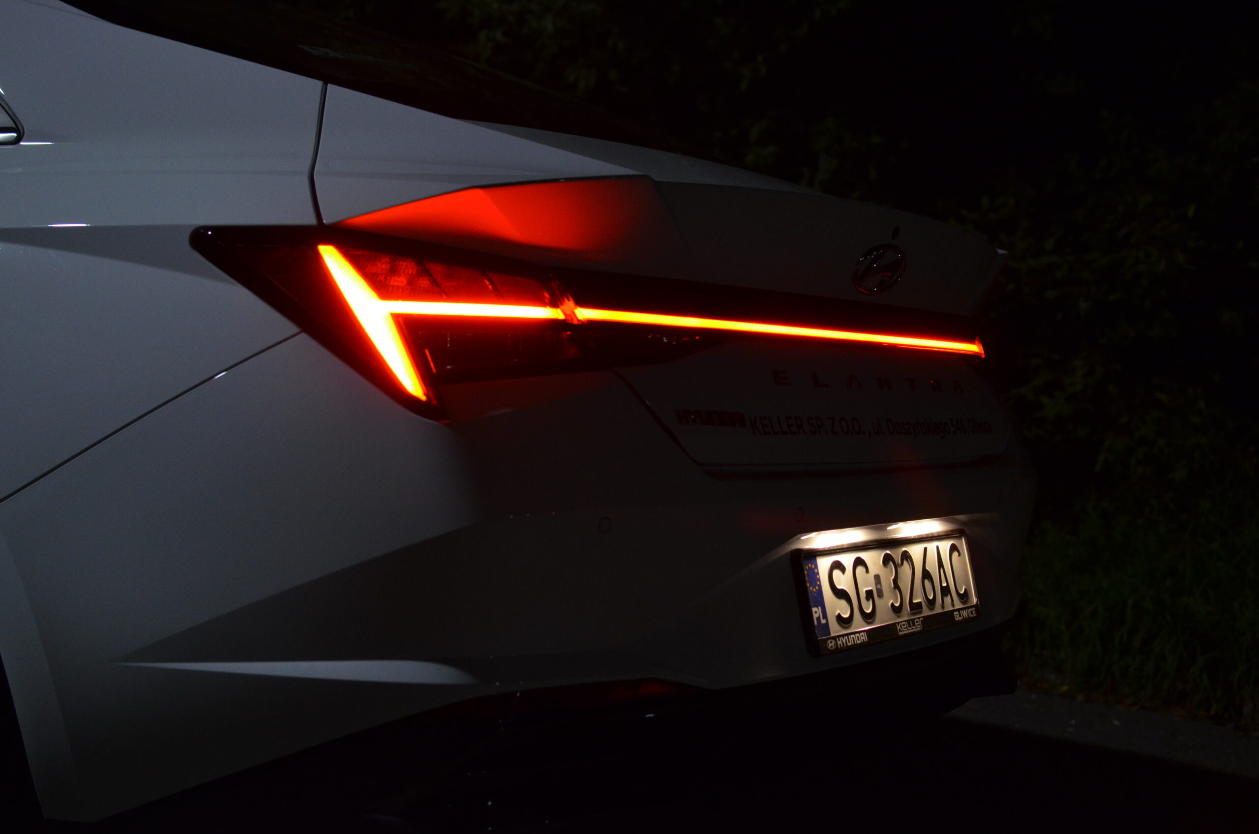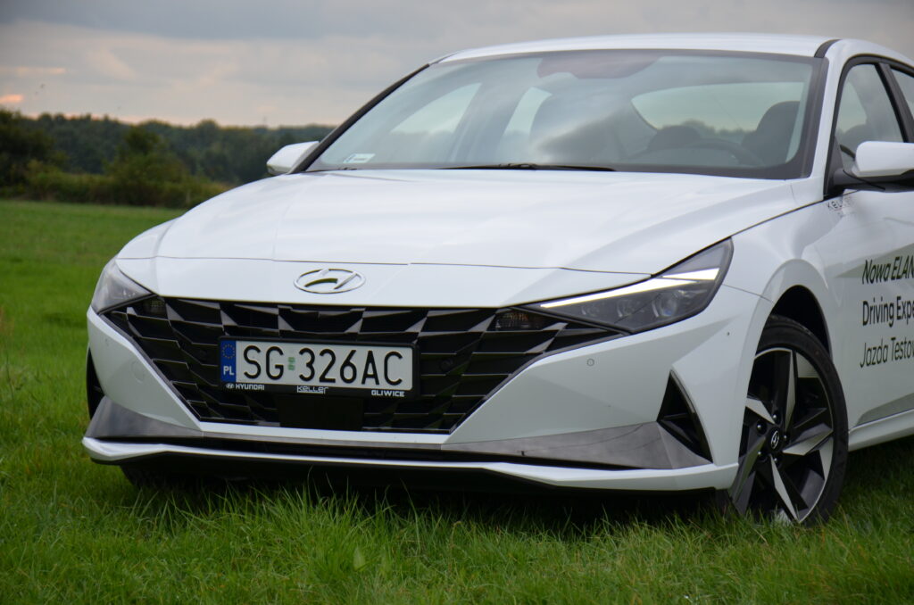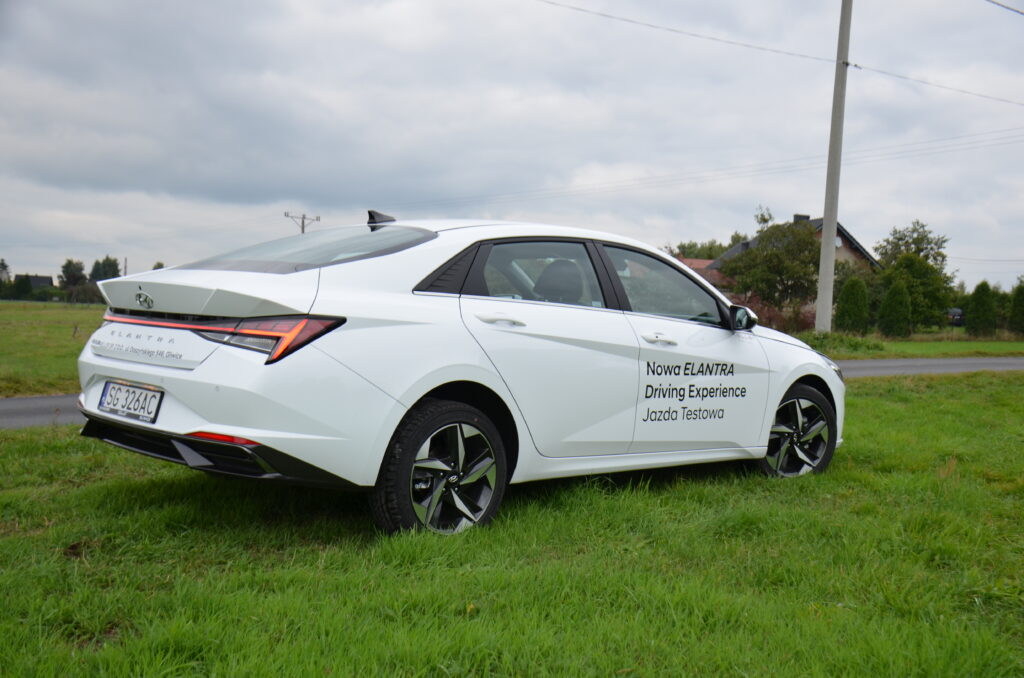 Hyundai Elantra VII generacji zmienił się nie do poznania względem swojego poprzednika. Na pierwszy plan wysuwa się całkowicie nowa stylistyka, która jest bardzo nowoczesna i agresywna. Nie wszyscy są zwolennikami tak futurystycznego wyglądu, ale trzeba przyznać, że może się podobać i wzbudza ogromne zainteresowanie wśród przechodniów. Osobiście zakochałem się w jego wyglądzie. W Elantrze możemy zauważyć wiele ciekawych zabiegów stylistycznych. Między innymi: nisko pociągnięta maska, która sprawia, że przód auta wydaje się być bardzo szeroki i sportowy, ledowa listwa łącząca tylne reflektory, czy też ogromna ilość ostrych przetłoczeń, mających na celu nie tylko dobrze wyglądać, ale też poprawiać aerodynamikę. Poza tym na pochwałę zasługuje fakt, że w przednim zderzaku są prawdziwe wloty powietrza. Warto zwrócić też uwagę na linię boczną samochodu. Jest to sedan narysowany jak coupe, stąd też pojawiają się porównania do Audi A7.