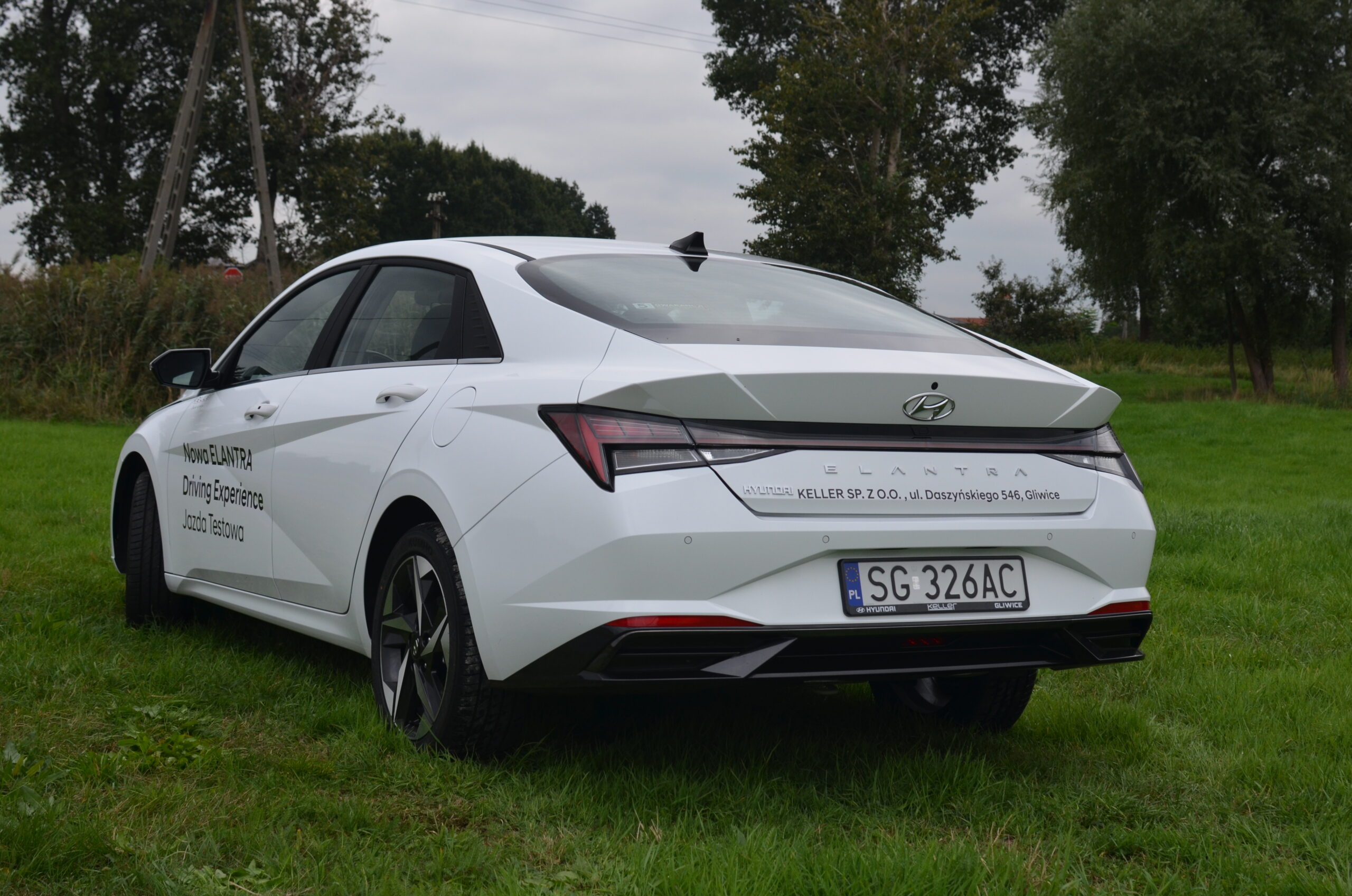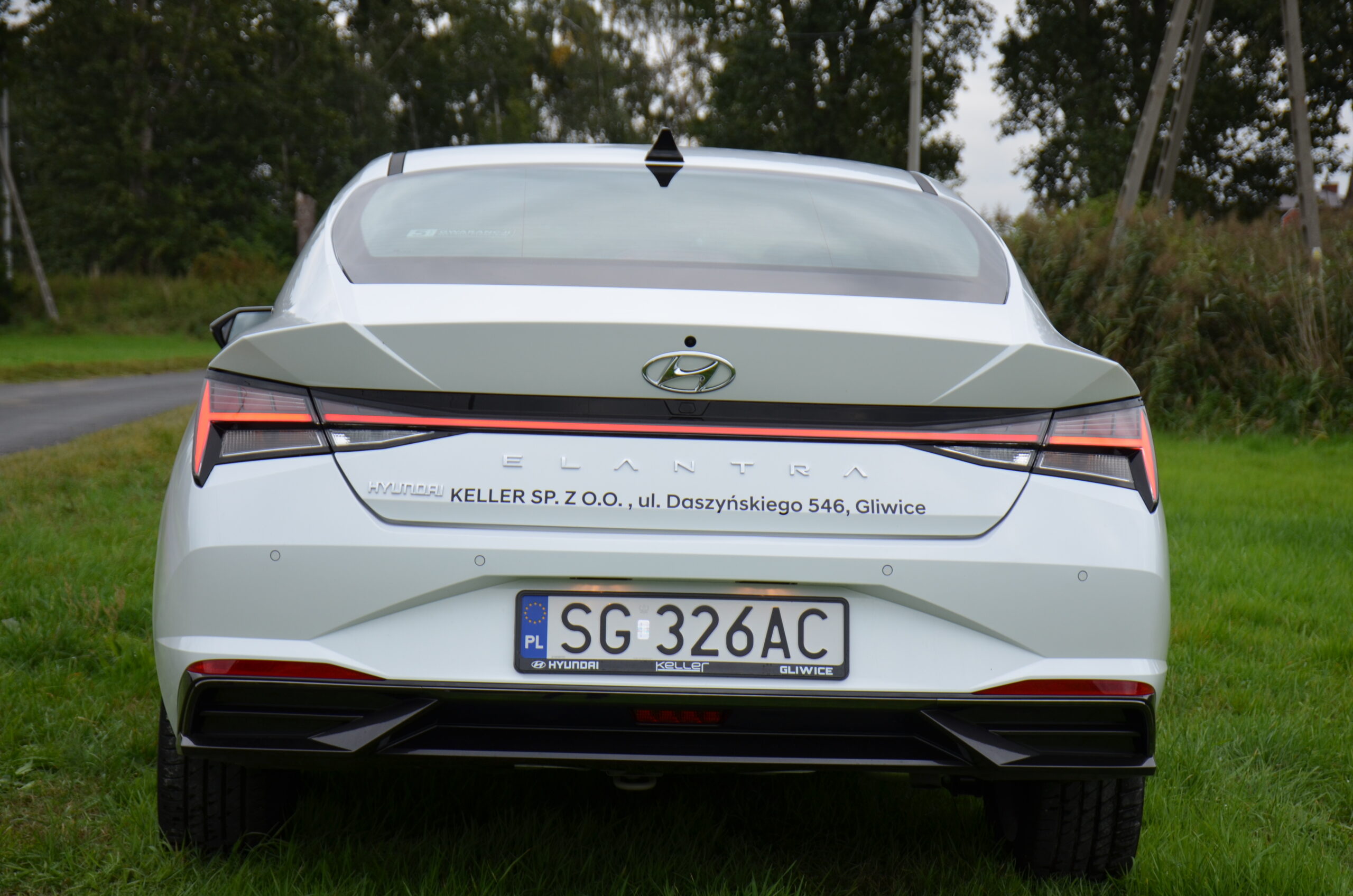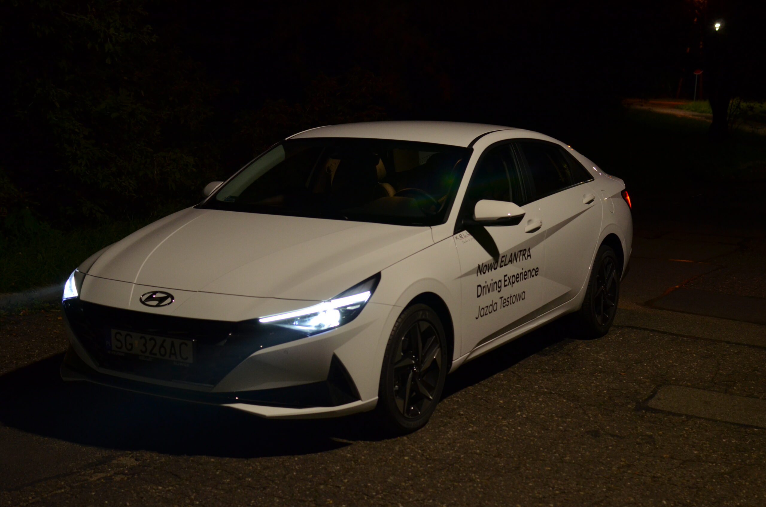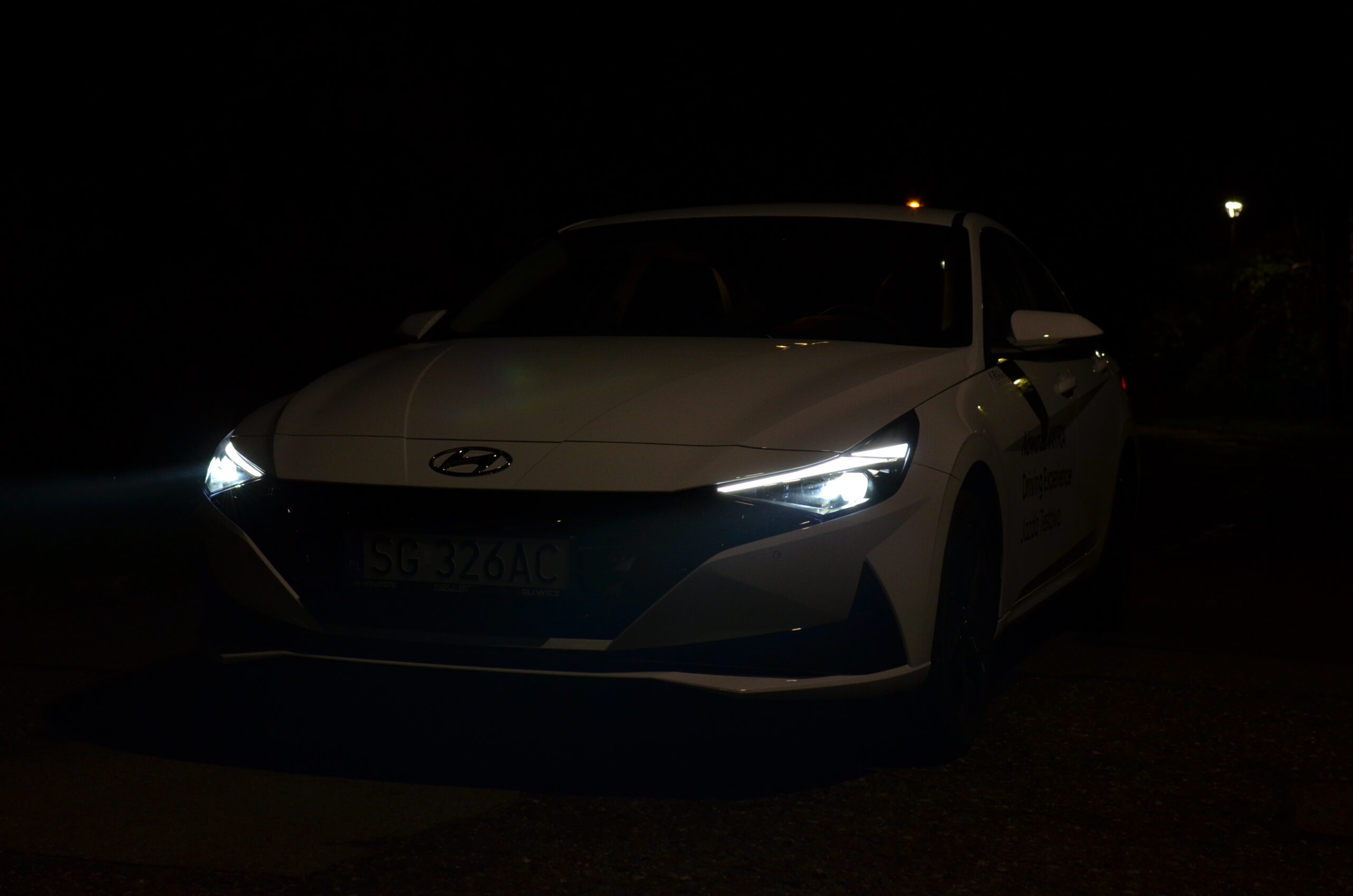 Hyundai Elantra VII generacji zmienił się nie do poznania względem swojego poprzednika. Na pierwszy plan wysuwa się całkowicie nowa stylistyka, która jest bardzo nowoczesna i agresywna. Nie wszyscy są zwolennikami tak futurystycznego wyglądu, ale trzeba przyznać, że może się podobać i wzbudza ogromne zainteresowanie wśród przechodniów. Osobiście zakochałem się w jego wyglądzie. W Elantrze możemy zauważyć wiele ciekawych zabiegów stylistycznych. Między innymi: nisko pociągnięta maska, która sprawia, że przód auta wydaje się być bardzo szeroki i sportowy, ledowa listwa łącząca tylne reflektory, czy też ogromna ilość ostrych przetłoczeń, mających na celu nie tylko dobrze wyglądać, ale też poprawiać aerodynamikę. Poza tym na pochwałę zasługuje fakt, że w przednim zderzaku są prawdziwe wloty powietrza. Warto zwrócić też uwagę na linię boczną samochodu. Jest to sedan narysowany jak coupe, stąd też pojawiają się porównania do Audi A7.