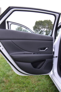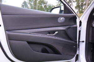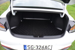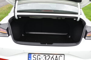 Niestety po raz kolejny muszę doczepić się do pewnego dysonansu, którym są użyte w środku materiały. Hyundai twierdzi, że jest tym bardziej premium w koncernie Hyundai – Kia. Niestety nie widać tego po ilości i twardości plastików. Przy cenie prawie 130 tysięcy złotych oczekiwałbym trochę więcej miękkich i przyjemnych w dotyku tworzyw. Tym bardziej, że konkurencją dla Elantry jest między innymi Skoda Octavia, w której zastosowane plastiki są po prostu lepsze, przy czym na plus dla Hyundaia jest fakt, że spasowanie elementów jest solidniejsze. Minusem jest też brak uchwytu na klapie bagażnika, za który można by pociągnąć przy jej zamykaniu.