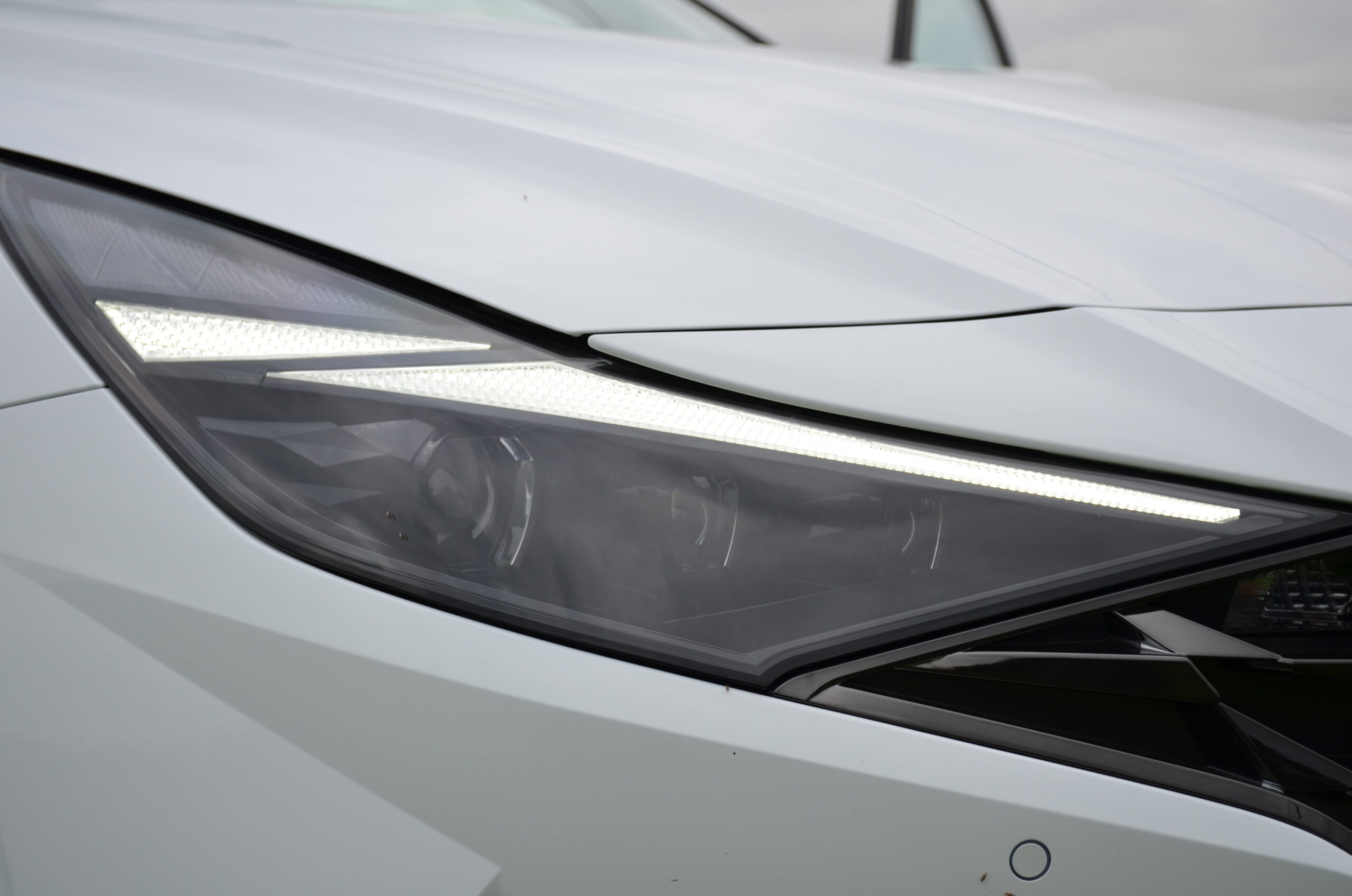 Kolejną kwestią są reflektory. W testowym egzemplarzu znajdowały się w pełni ledowe reflektory, jednakże w tym momencie pojawiły się u mnie pierwszy raz dwa skrajne odczucia. Reflektory wraz ze światłami do jazdy dziennej idealnie wpasowują się do ogólnego zarysu samochodu, ale totalnie niezrozumiałym dla mnie zabiegiem jest umieszczenie kierunkowskazów, nie w ramach świateł dziennych, ani nawet nie w reflektorach, tylko na skrajnych fragmentach grilla. Ten przejaw absurdu i głupiej oszczędność dopełnia fakt, że kierunkowskazy nie są ledowe.