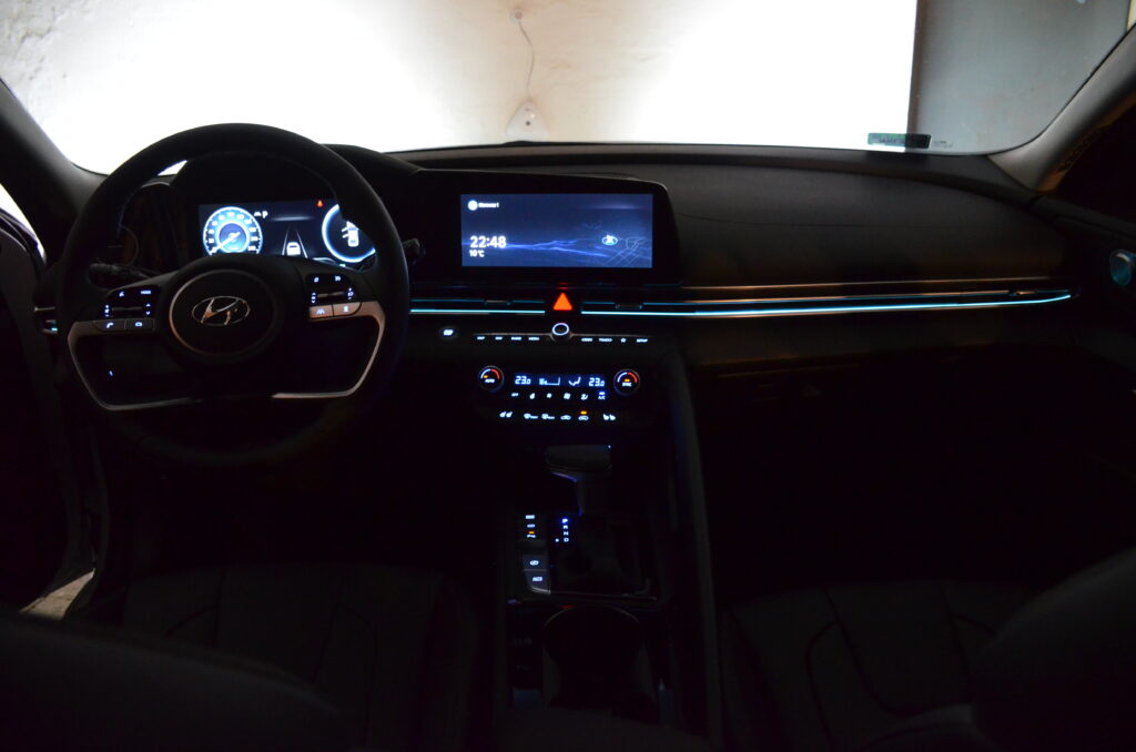 W kwestii komfortu i systemów bezpieczeństwa, na Hyundaia Elantre nie mogę narzekać, a wręcz przeciwnie; muszę pochwalić. Systemy bezpieczeństwa oraz infotainment są takie same jak w Hyundaiu Kona oraz Hyundaiu Tusconie czyli bardzo dobre. Po więcej informacji na ten temat zapraszam was do testów wyżej wymienionych modeli. Sama ergonomia, jak i komfort podróży również jest na dobrym poziomie. Samochód posiada wszystko co powinien posiadać. Klimatyzacja dwustrefowa, bardzo wygodne skórzane fotele, które są wentylowane i ogrzewane, hans free, wszystkie potrzebne systemy, przy czym ogromnym plusem jest brak systemu Start/stop. Elementem wyposażenia dodatkowo umilającym podróż jest nagłośnienie BOSE, które gra całkiem przyzwoicie. Zawieszenie jest jędrne i sprężyste, a samo resorowanie jest świetne i co bardzo istotne, nie powoduje to przechyłów samochodu w zakrętach.