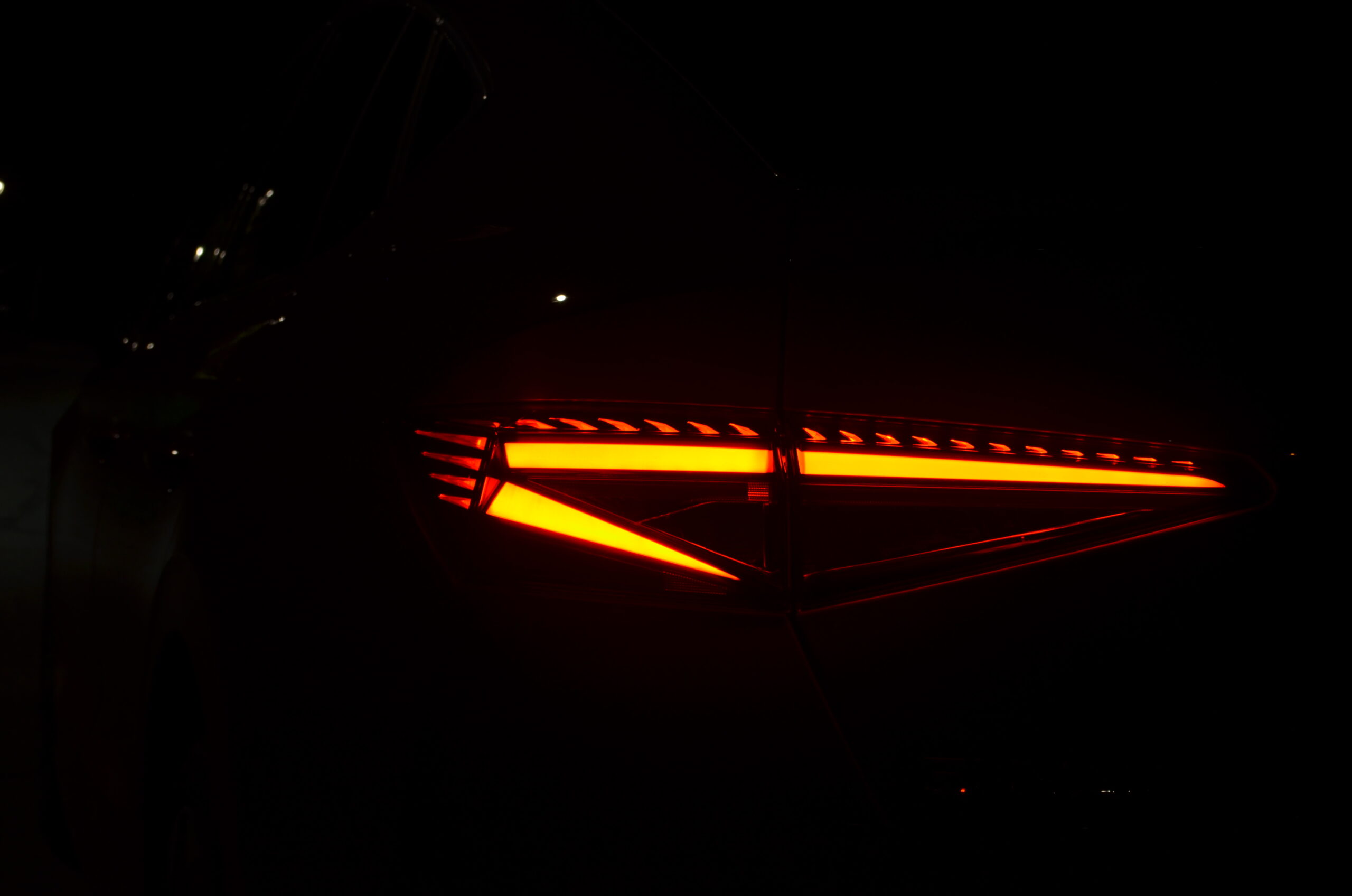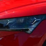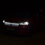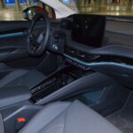 Niezwykle wyróżnia się także przód samochodu, zaprojektowany z myślą o dynamicznym i futurystycznym podejściu do stylistyki. Agresywne przetłoczenia na masce i zderzaku oraz świecąca atrapa grilla przyciągają uwagę, nadając pojazdowi odważny i nowoczesny charakter. Wąskie reflektory wykonane w technologii Matrix LED doskonale współgrają z całą koncepcją, podkreślając innowacyjność tego pojazdu.