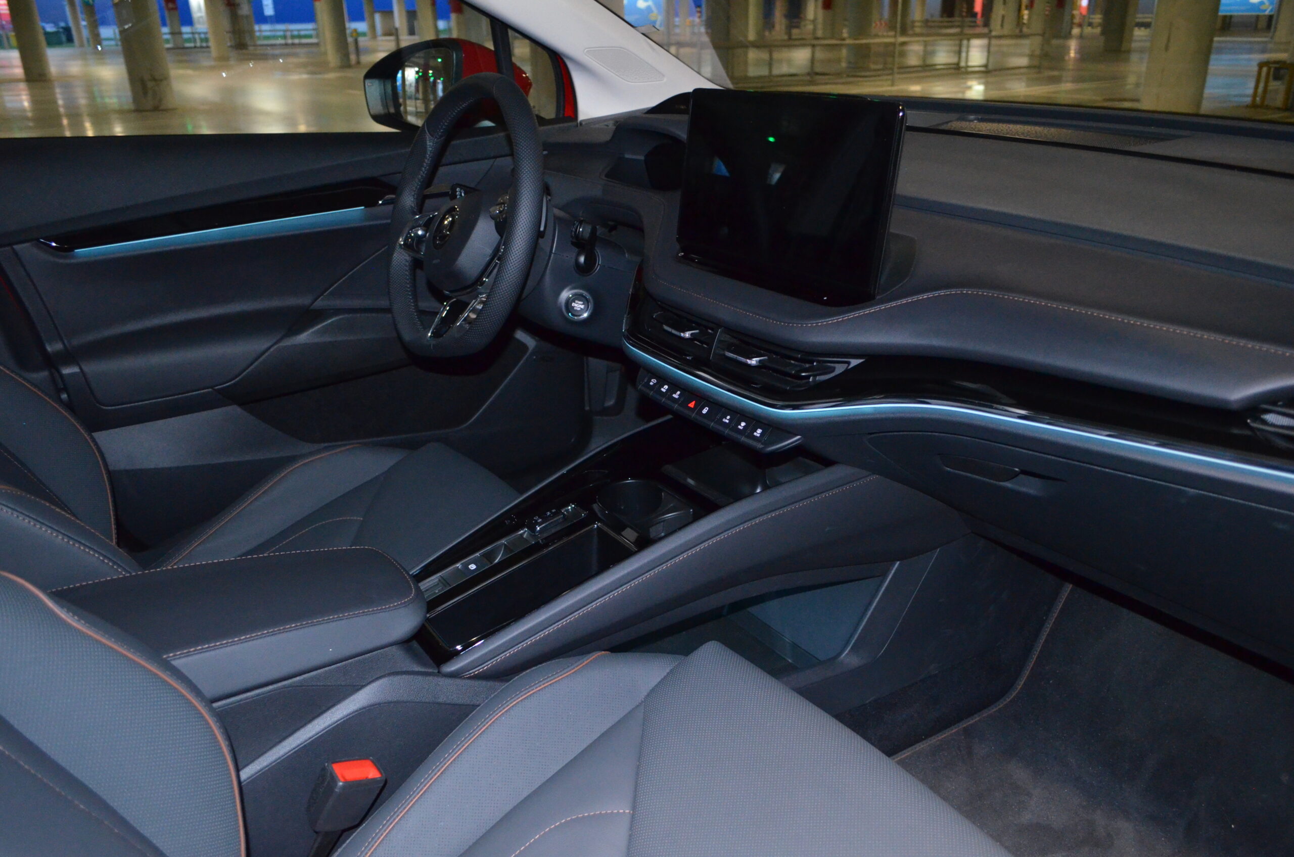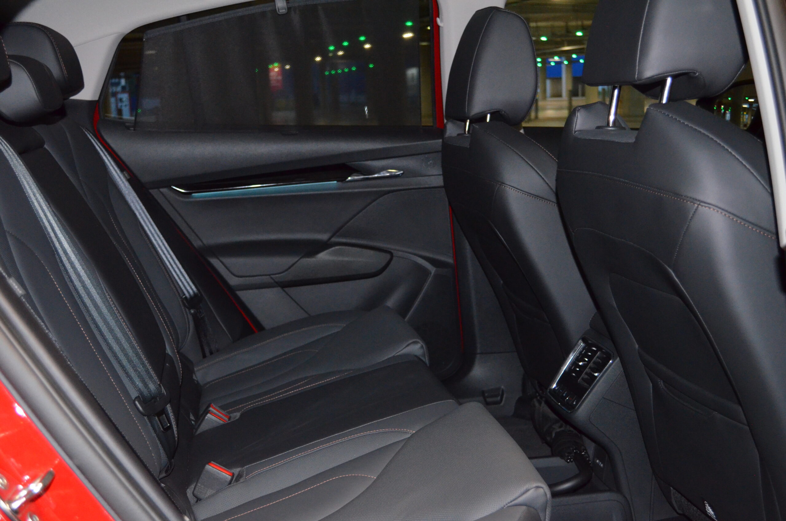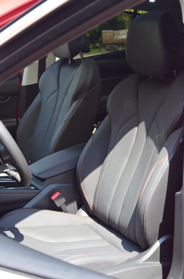 Przechodząc dalej przestrzeń dla kierowcy i pasażerów została zaprojektowana z myślą o maksymalnym komforcie. Fotele są wygodne i ergonomiczne, co pozwala na długie podróże bez uczucia zmęczenia. Dodatkowo jazdę umila oświetlenie Ambiente, które bardzo ładnie oświetla kabinę.