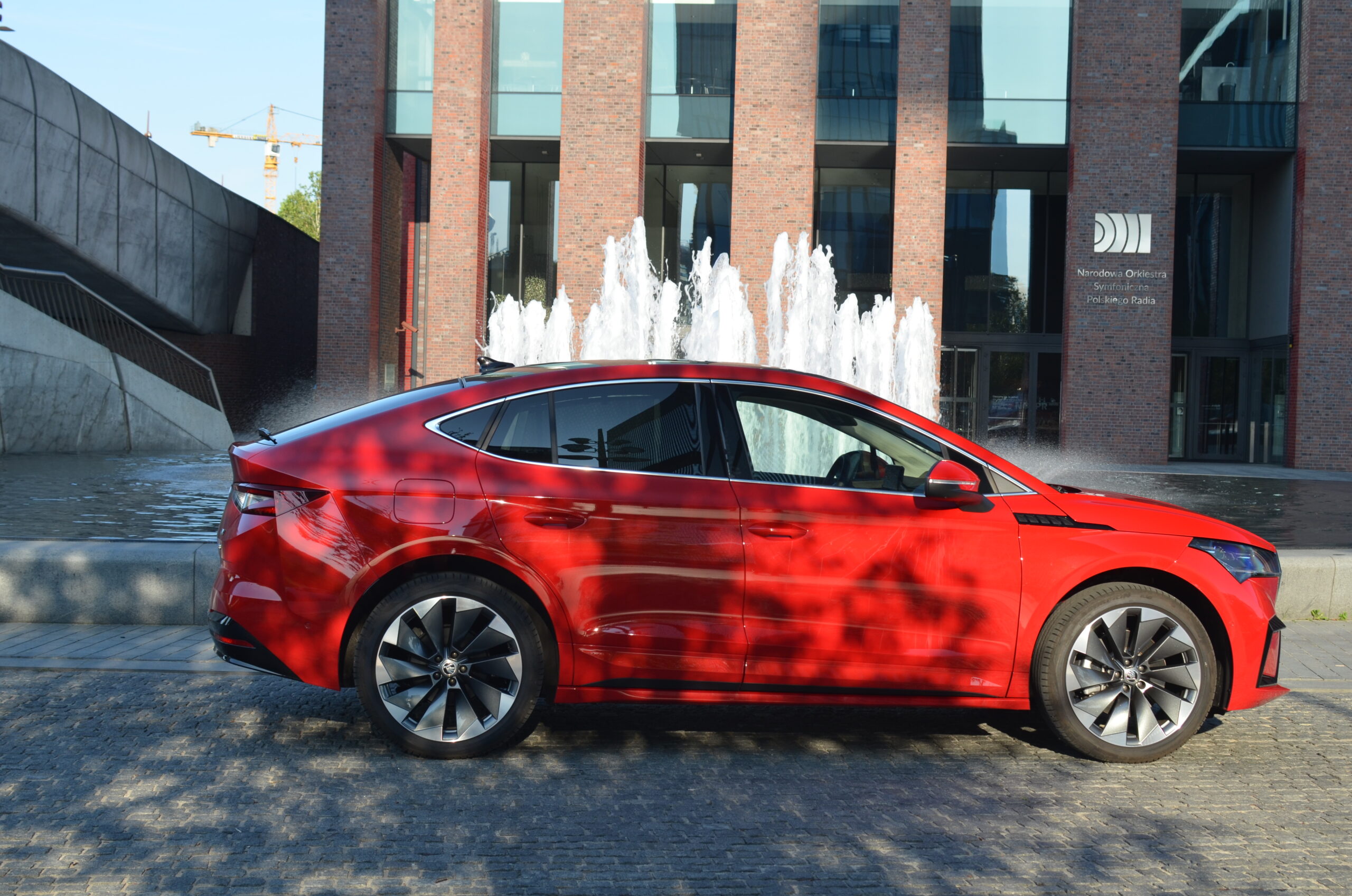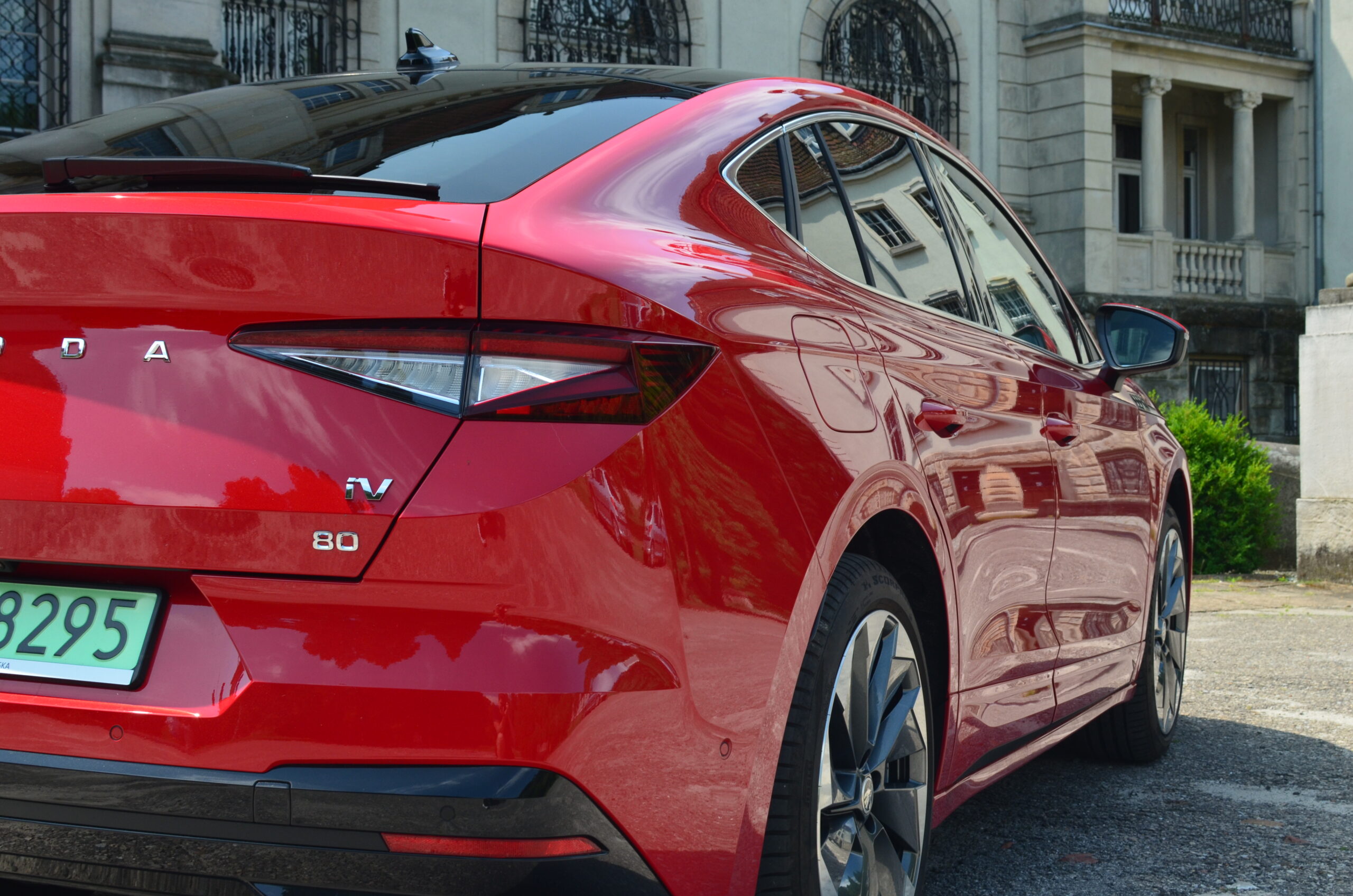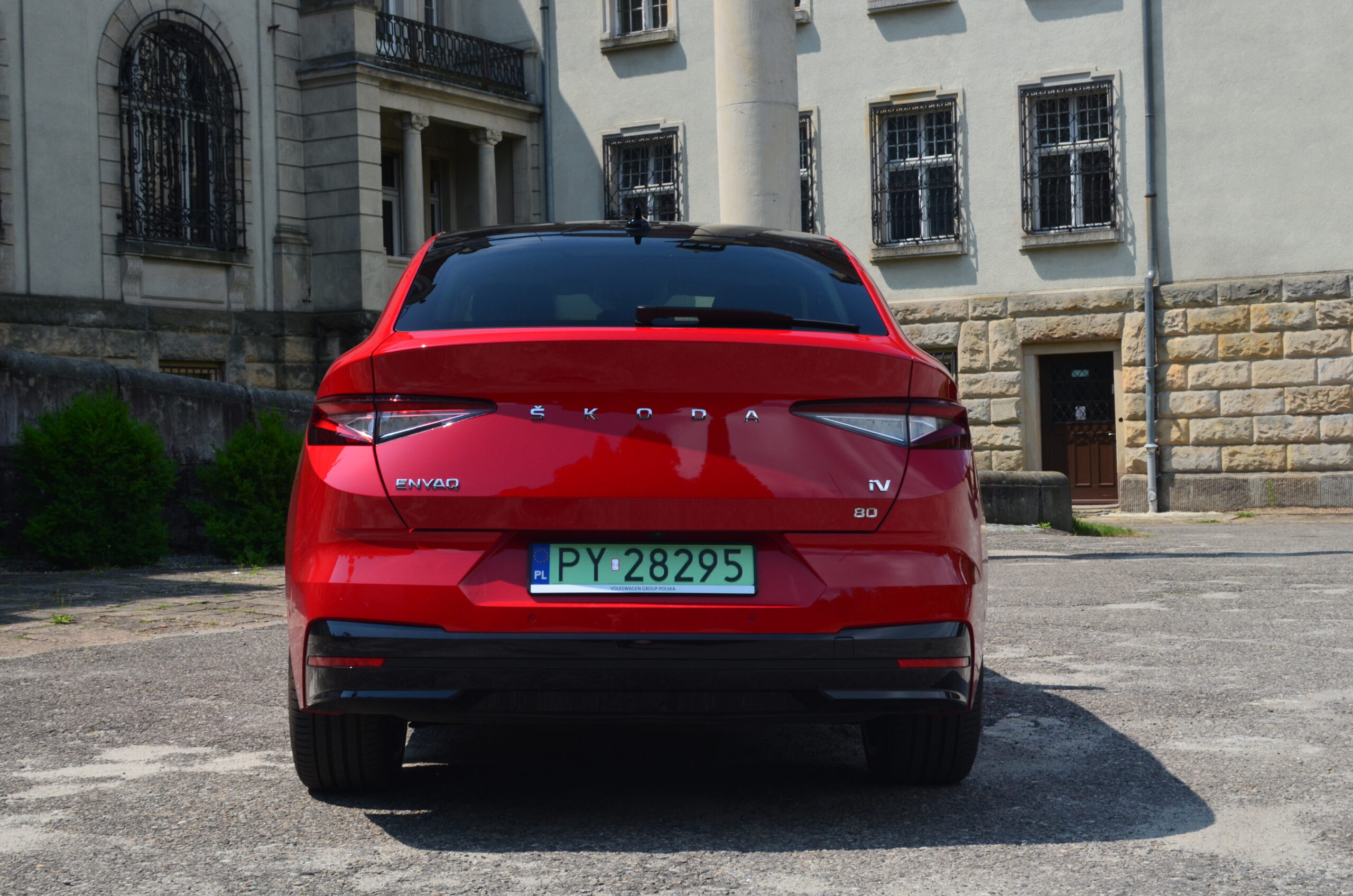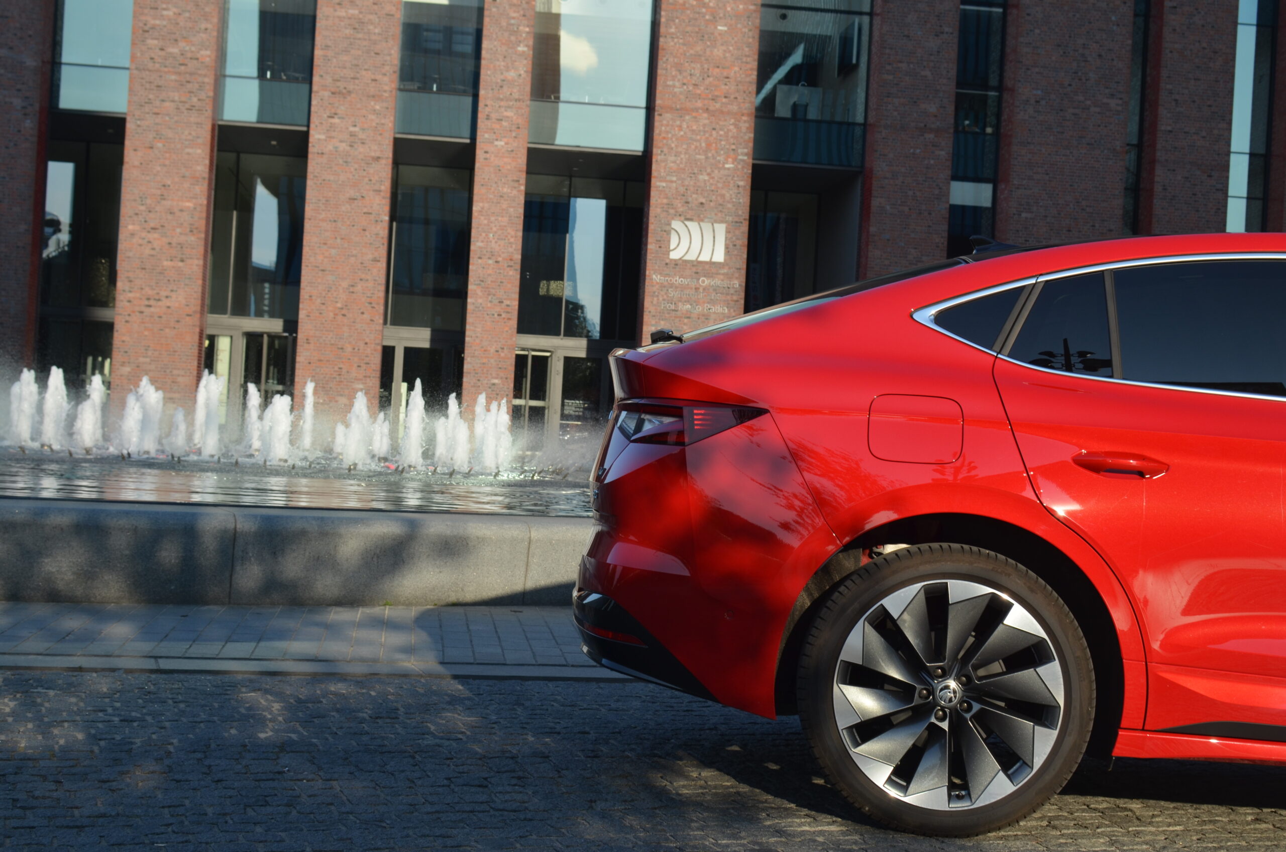Z boku elektryczny SUV przyciąga wzrok designerskimi 21-calowymi felgami, których unikatowy wzór doskonale harmonizuje z dynamicznym wyglądem nadwozia. Dodatkowo, w testowanym egzemplarzu czerwony kolor nadwozia nadaje Enyaq’owi sportowego pazura, sprawiając, że pojazd emanuje pewnością siebie i charakterem.