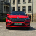 Pomijając bolączki charakterystyczne dla tego rodzaju napędów, trzeba przyznać, że Skoda Enyaq Coupe pod względem prowadzenia i jazdy jest bardzo dobrym samochodem. Układ kierowniczy jest precyzyjny i daje dobrą informację zwrotną. Oczywiście nie prowadzi się jak hot hatch, ale nikt też tego po niej się nie spodziewał. Moc 204 koni mechanicznych jest wystarczająca i pozwala na dynamiczną jazdę. Rzeczą, do której na pewno trzeba się przyzwyczaić są duże gabaryty samochodu. Wydaje się on zza kierownicy większy niż w rzeczywistości. Wrażenie to potęguje szybko opadająca maska, która sprawia, że nie jesteśmy w stanie dokładnie określić gdzie kończy się przód samochodu. W tym przypadku bardzo pomagają jednak obecne w testowej wersji kamery 360 stopni.