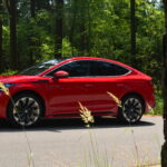 Jednym z najbardziej charakterystycznych elementów nadwozia tego modelu jest smukła, opadająca linia dachu, która nawiązuje do kształtu sportowego coupe. Taka sylwetka dotychczas była zarezerwowana dla SUV-ów w segmencie premium w takich samochodach jak Mercedes GLE Coupe czy też BMW X6. Ten zabieg projektantów doskonale współgra z minimalistycznym podejściem do detali, nadając pojazdowi niepowtarzalny i ciekawy wygląd. Gładkie, płynne powierzchnie boczne podkreślają również, jak ważną rolę odgrywa aerodynamika w tym modelu.