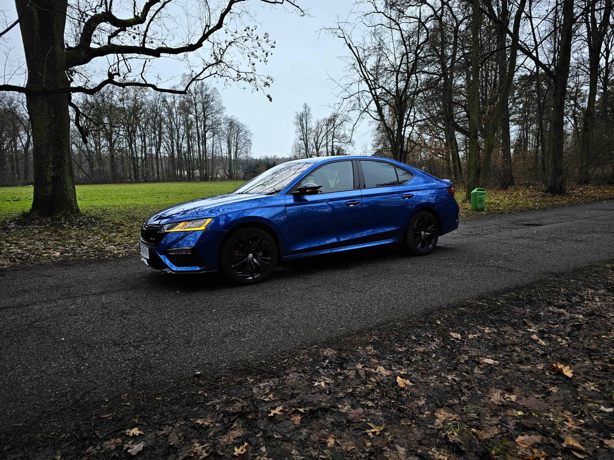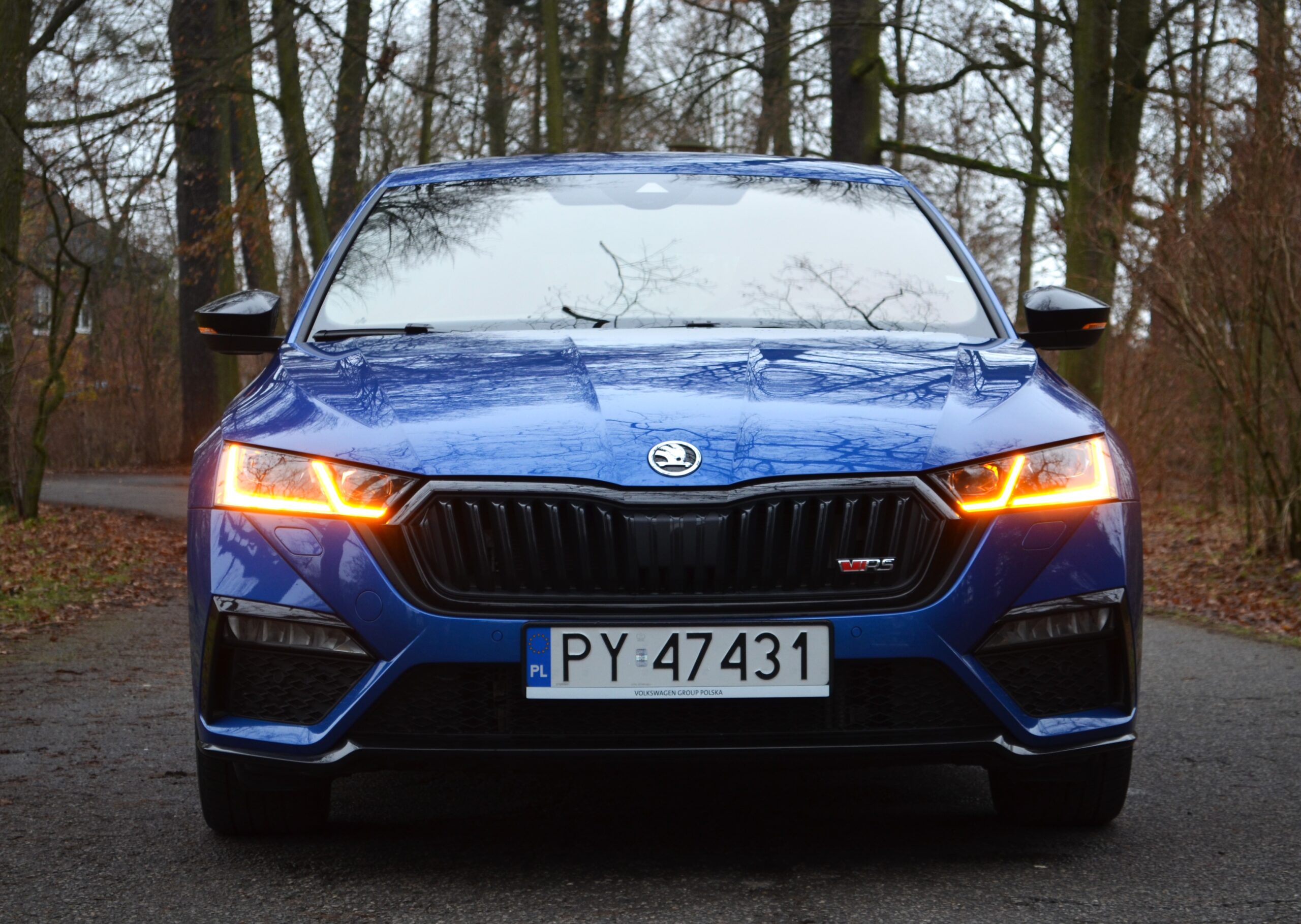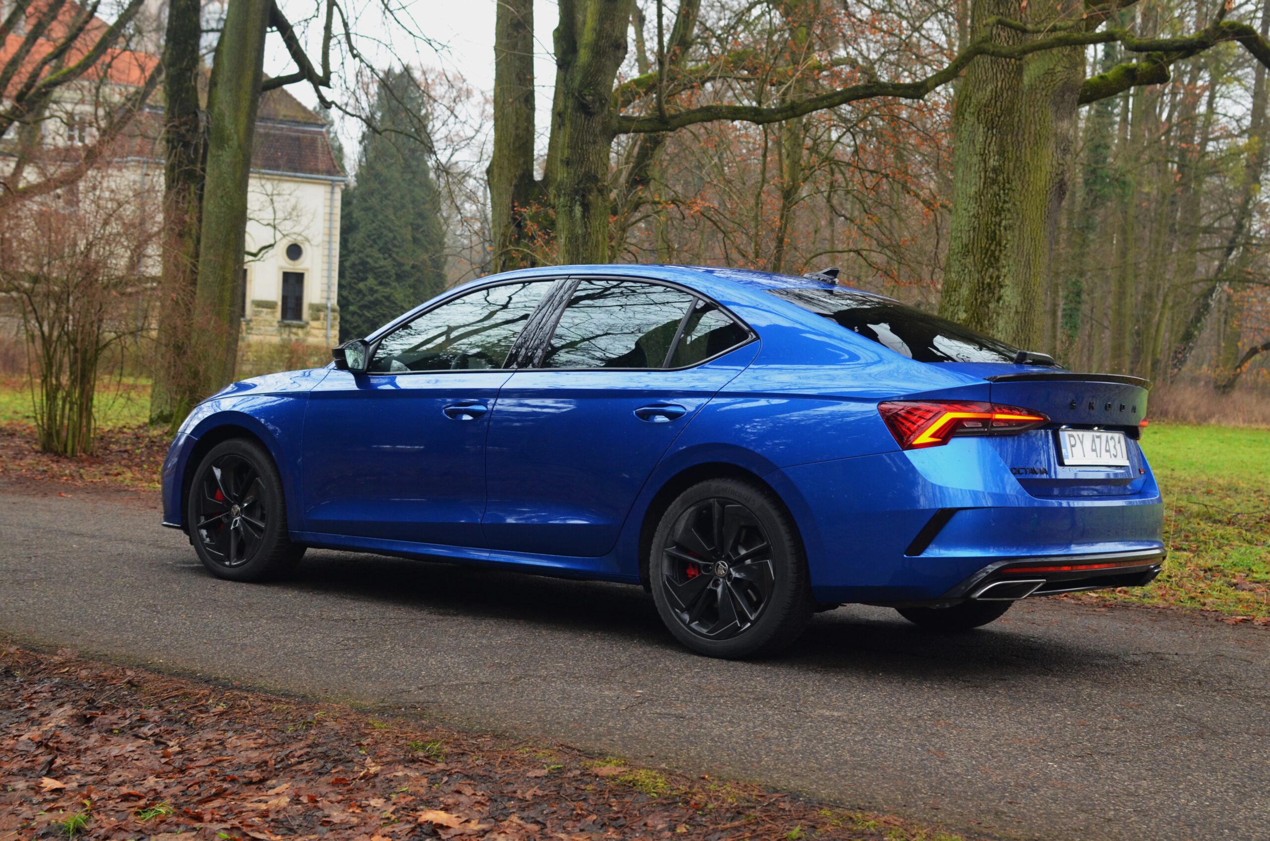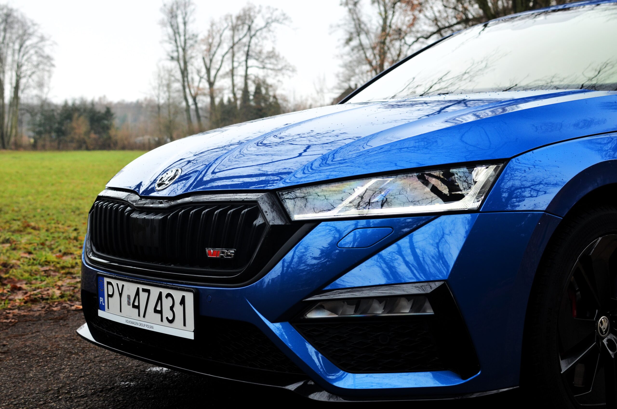 Z zewnątrz Skoda Octavia RS rzuca się w oczy. Ma bardzo ładną sylwetkę, z agresywnymi liniami, a całość prezentuje się bardzo świeżo. Z przodu zauważamy zmieniony zderzak w porównaniu do zwykłej wersji, wloty powietrza oraz reflektory Matrix LED. Z tyłu znajdują się przepiękne reflektory, które, moim zdaniem, stanowią najładniejszy element tego samochodu. Dodatkowo, na klapie bagażnika widnieje lotka, a dwie prawdziwe końcówki wydechu… niestety nie wydają nawet pół decybela dźwięku. To jedna z kilku rzeczy, które negatywnie zaskakują w tym samochodzie.