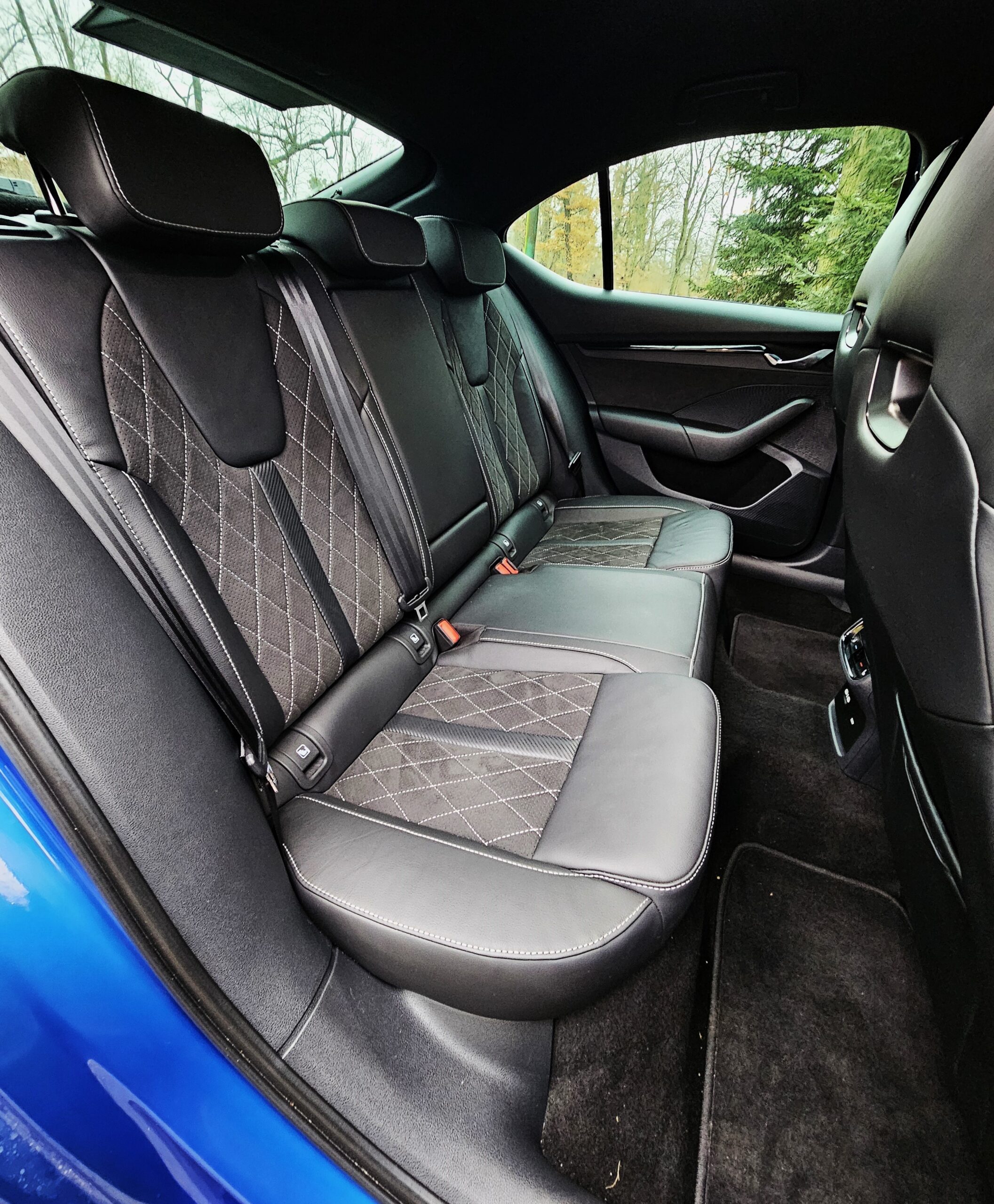 Przechodząc na tylną kanapę, po raz kolejny zaskakuje ilość miejsca, nie tylko na nogi, ale również nad głową. Mam ponad 180 centymetrów wzrostu, a spokojnie nad głową mieściły mi się jeszcze 4-5 palców. Jak na taką linię i segment, wynik można uznać za rewelacyjny.